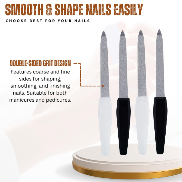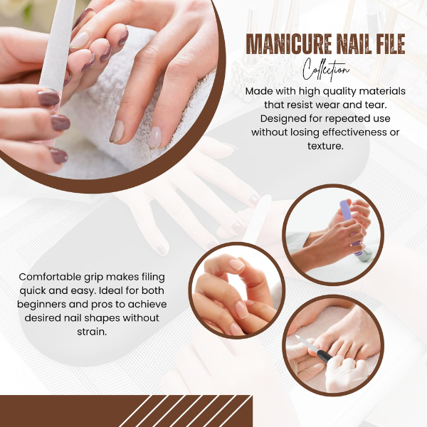 Maintain flawless nails with the Professional Nail File Set, specially designed for acrylic, gel, and natural nails. This versatile set includes multi-shape emery boards and buffers, allowing precise shaping, smoothing, and polishing for salon-quality manicures and pedicures at home.